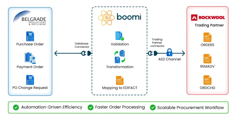 We used Boomi EDI to automatically transform the data extracted from Belgrade into Rockwool’s required format. By standardizing the format, we ensured that all the documents were fully compliant, which reduced rejection rates.